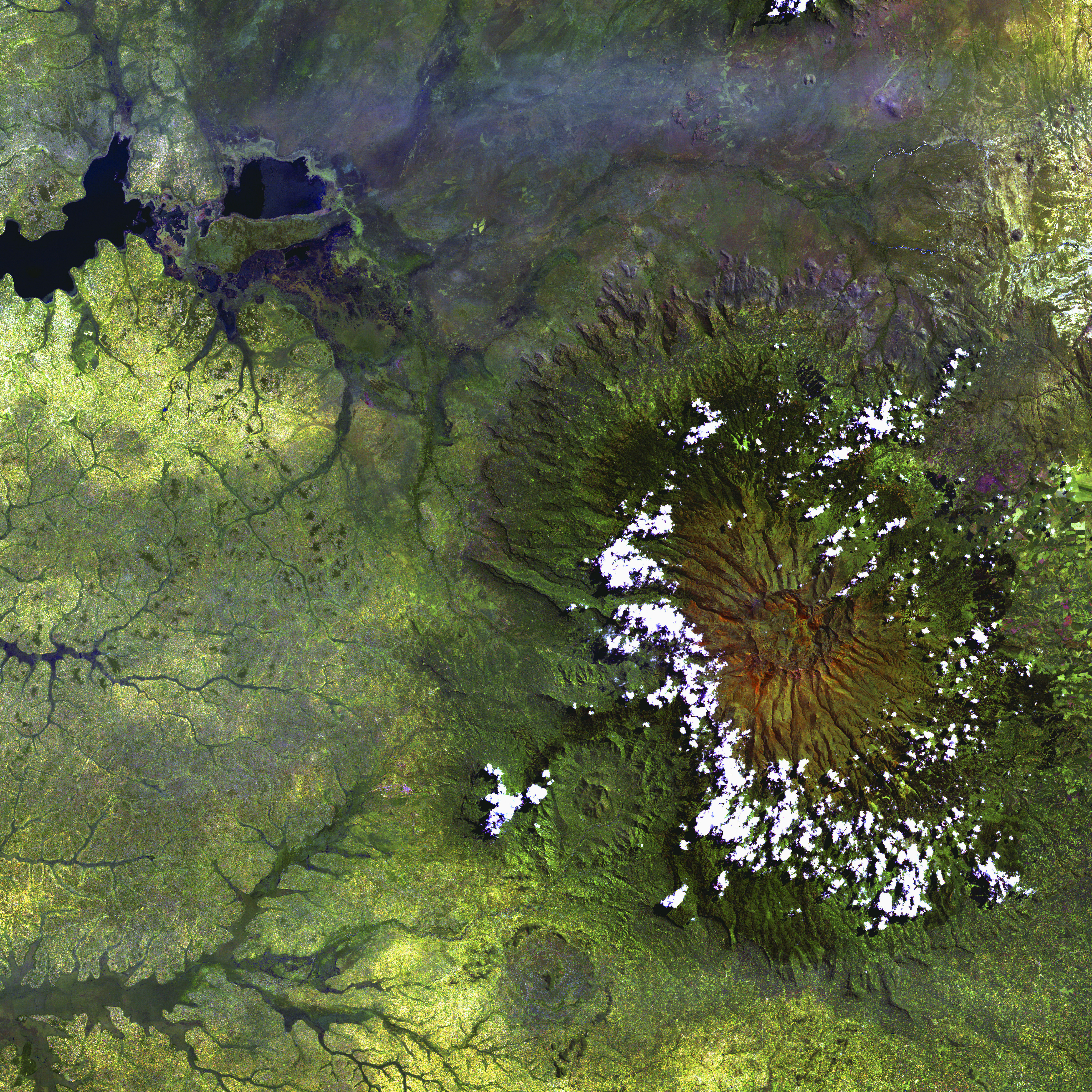 Clouds encircle the lofty rim of Africa’s Mount Elgon, a huge, long-extinct volcano on the border between Uganda and Kenya. The solitary volcano has one of the world’s largest intact calderas, a cauldron-like central depression. The caldera is about 6.5 kilometers across and formed following an eruption, when the emptied magma chamber collapsed under the weight of volcanic rock above it.